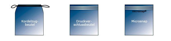 | Kordelzugbeutel | 0,05 – 0,07 mm | 130 – 400 mm | 210 – 600 mm |