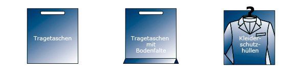 | Kleiderschutzhüllen | 0,03 – 0,25 mm | 100 – 1100 mm | 250 – 3500 mm |